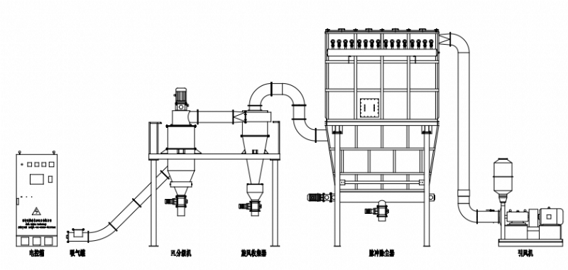 ● 可與球磨機、振動磨、雷蒙磨等粉磨設備串聯(lián)使用,組成閉路循環(huán)。